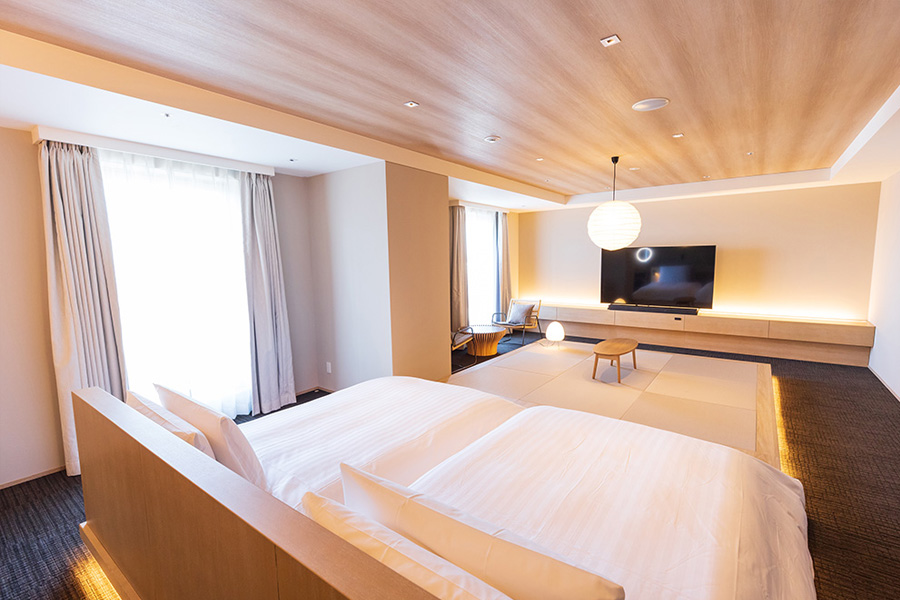 「Modern Japanese-style Room」は、「JAPAN」をコンセプトにした客室で、茶室のエッセンスを取り入れた和モダンなインテリアが特徴です。日本の文化と伝統を身近に感じられる空間で、国内外のゲストに静寂と安らぎを提供します。