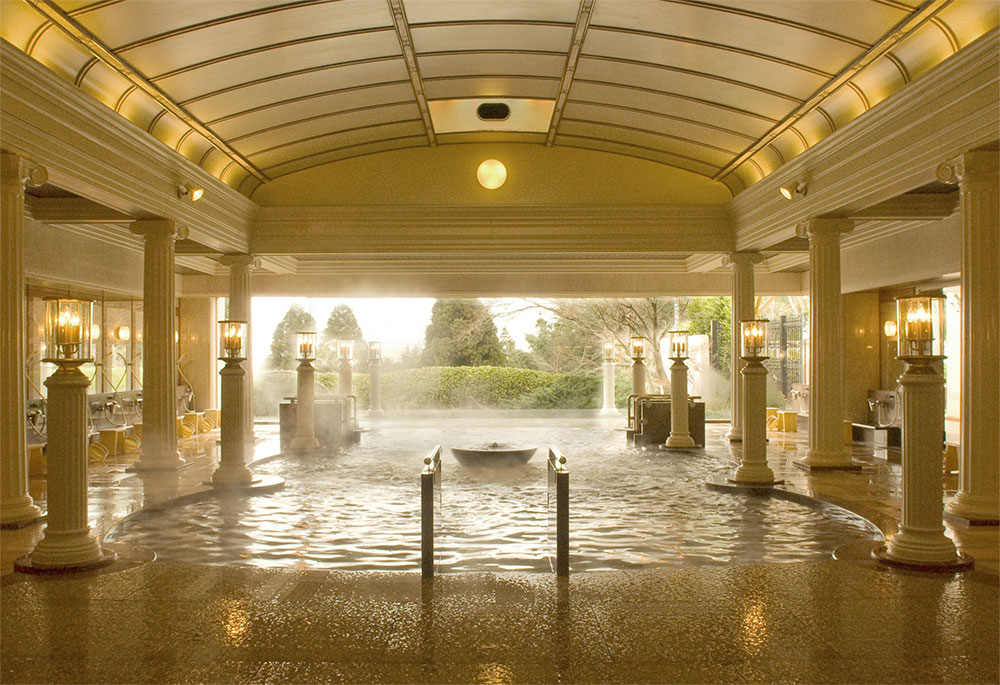 兵衛向陽閣では、三つの湯処で九つの湯ぶねをご用意しております。和風の「一の湯」、ローマ風の「二の湯」、そして湯治場風の「三の湯」、異なる趣を持つ3つの大浴場で開放感あふれる景色と共にゆったりとした時間をお過ごしいただけます。