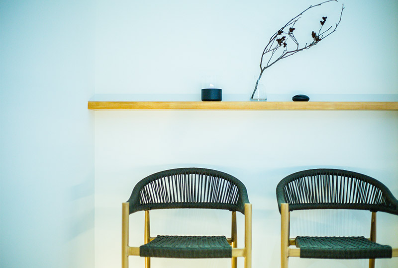デザインは、山田設計の建築家、山田和司氏によるものです。彼の手がけた夕庵は、茶室の余白を思わせる「腹八分目のデザイン」を採用しており、白い手すりや額装が静謐な空間を演出します。主張を抑えつつも、ドアノブや照明、掛け障子などのデザインや色を引き立たせることで、細部にわたるこだわりが感じられる空間を創り出しています。また、但馬の気候や風土を取り入れた設計は、どの角度から日が射し込むか、どんな影ができるかといった自然との調和を大切にし、見せたい景色と守りたいプライバシーの両立を叶えています。