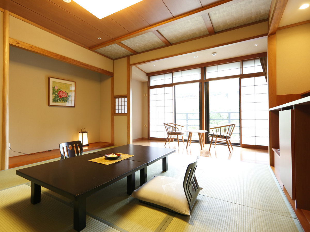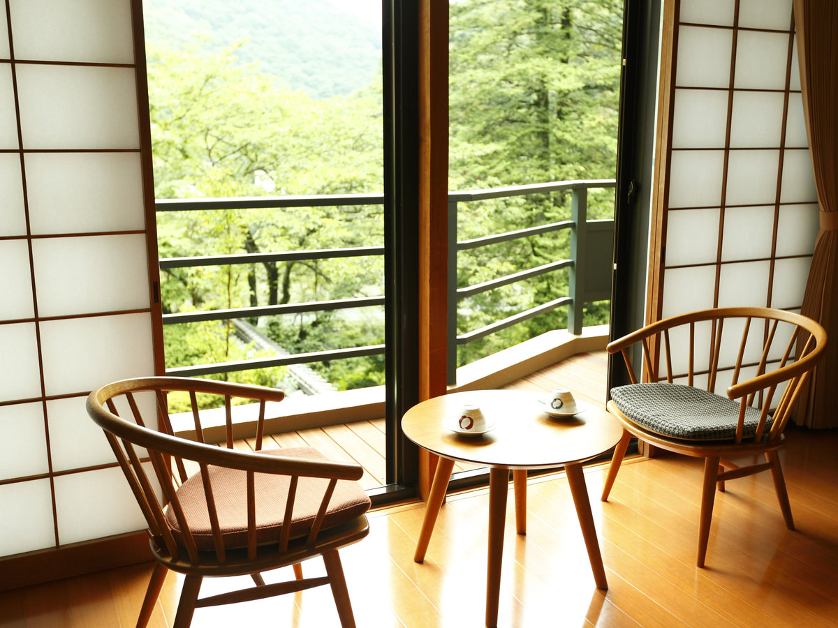 本館の客室は、四季が織りなす須雲川のせせらぎと緑豊かな景観を背景に、和の佇まいを一層引き立てます。静かに流れる時間の中で、心身共にリラックスし、豊かな心を取り戻すことができる空間です。自然の美しさに心が満たされる、穏やかなひと時をお過ごしください。