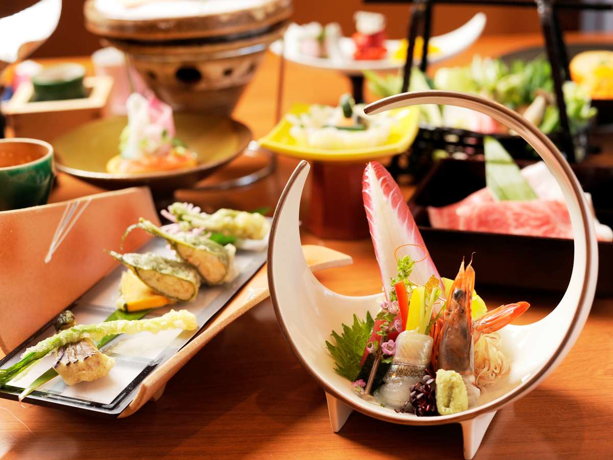 ホテル南風荘の食卓は、花鳥風月が織りなす美しい景色のよう。四季折々の食材を活かした和風料理は、まさに味覚の綺羅星。山海の旬の幸を堪能しながら、お食事がもたらす喜びと歓談で、食卓が小さな宇宙へと変わる瞬間をお楽しみください。
