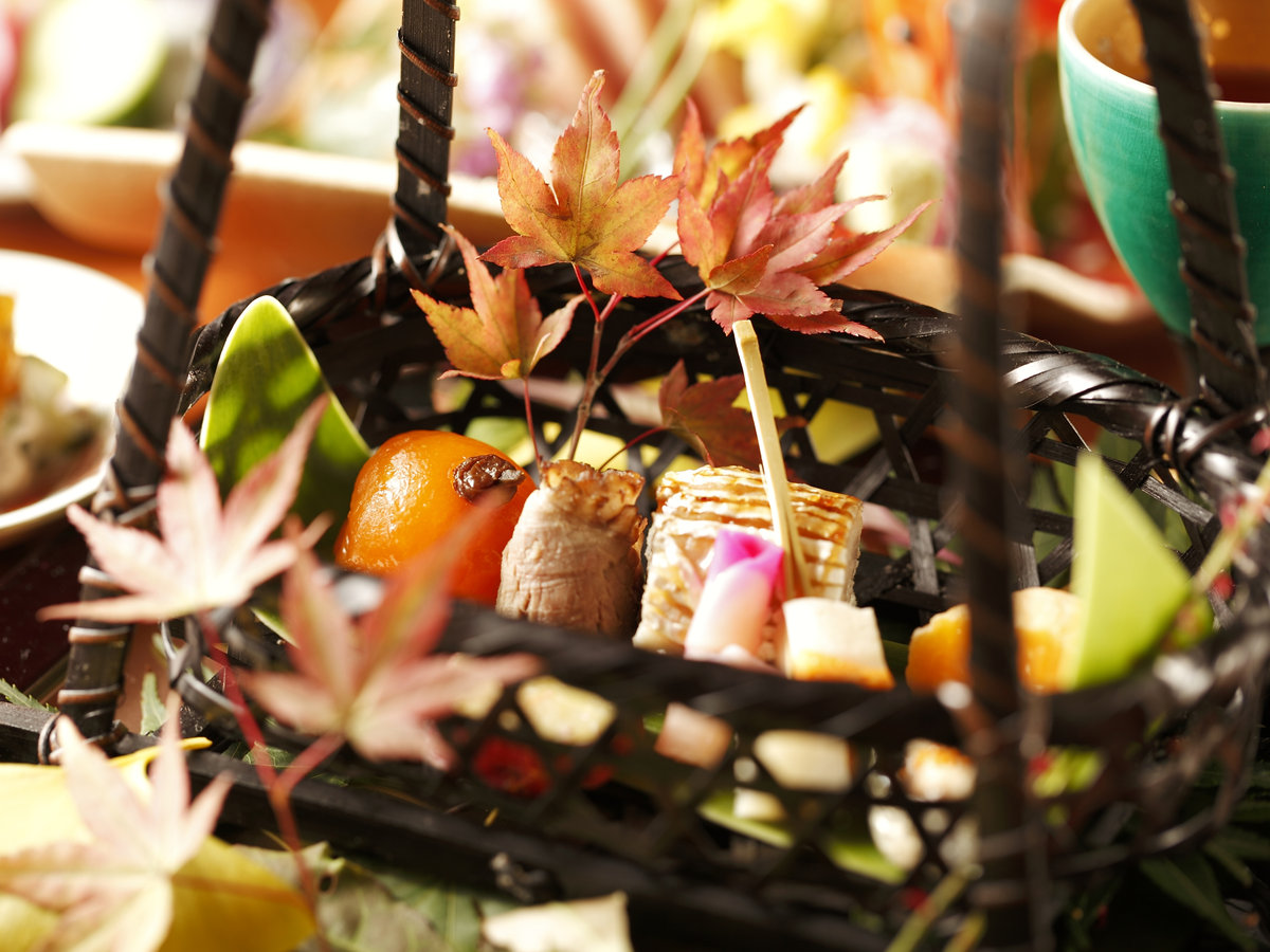 旬の食材が持つ、自然の恵みを最大限に生かした料理は、見た目にも美しく、舌にも心にも残る味わいを提供します。自然と四季の移ろいを感じながら、心ゆくまで美食の時間をお楽しみください。