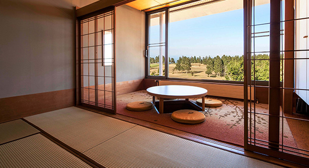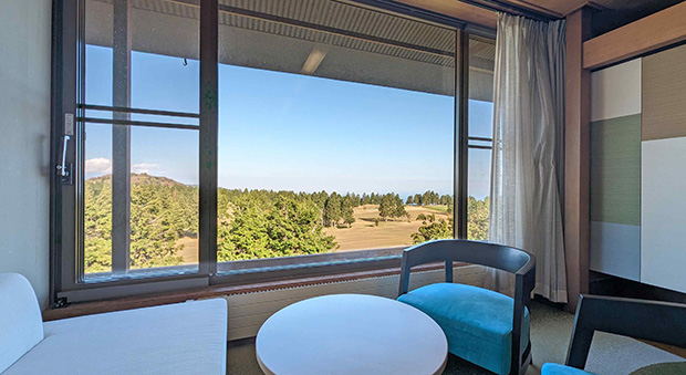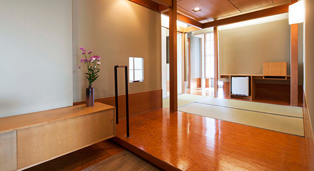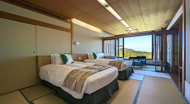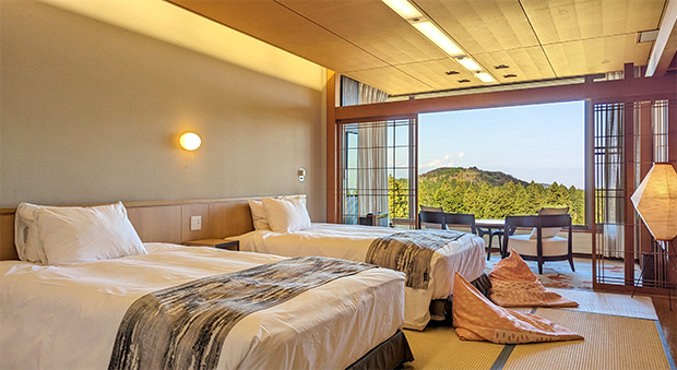 和 スーペリアツイン:こちらも最上階で、3名様までのご宿泊が可能。朝も夜も、箱根の自然とともに都心の華やぎを一望できる、まさに特別なお部屋です。