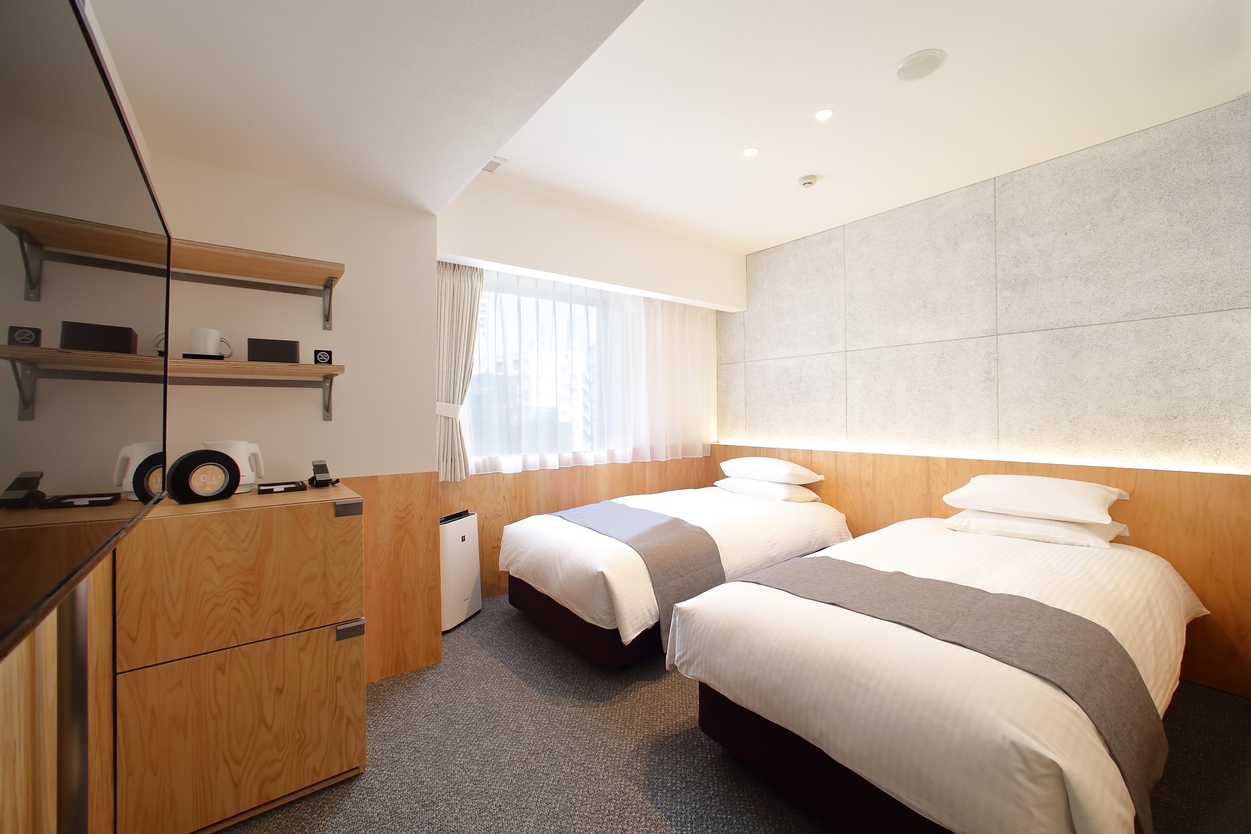また、ホテル館内や外観だけでなく客室内にも工業素材を使用。ベッドの背面や部屋の壁に、強度がある“針葉樹合板”を使用することで、木のぬくもりを感じられる空間になっています。