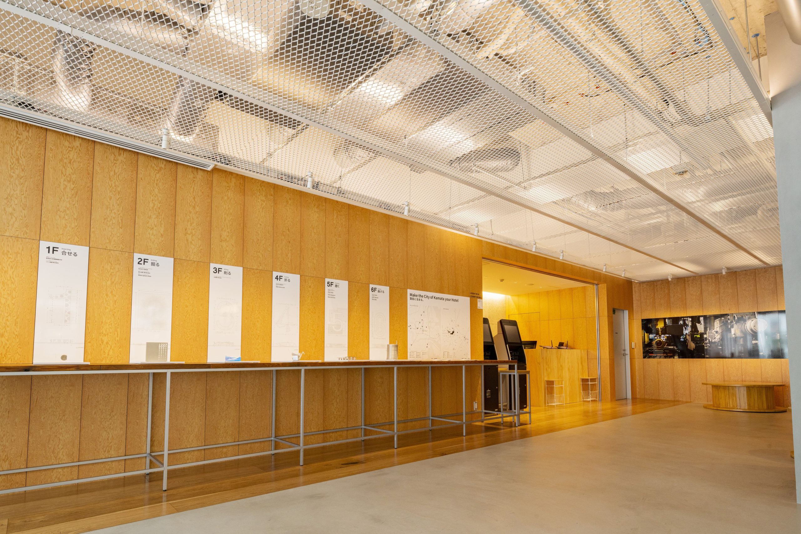 この旋盤機は、蒲田の工業の歴史を象徴しており、ホテルのデザインにもその精神が反映されています。入り口の近くには、建物の外壁や屋根によく使われる“ガルバリウム鋼板”(アルミニウムや亜鉛でめっきした金属鋼板)が使われており、工業的な雰囲気を感じさせます。