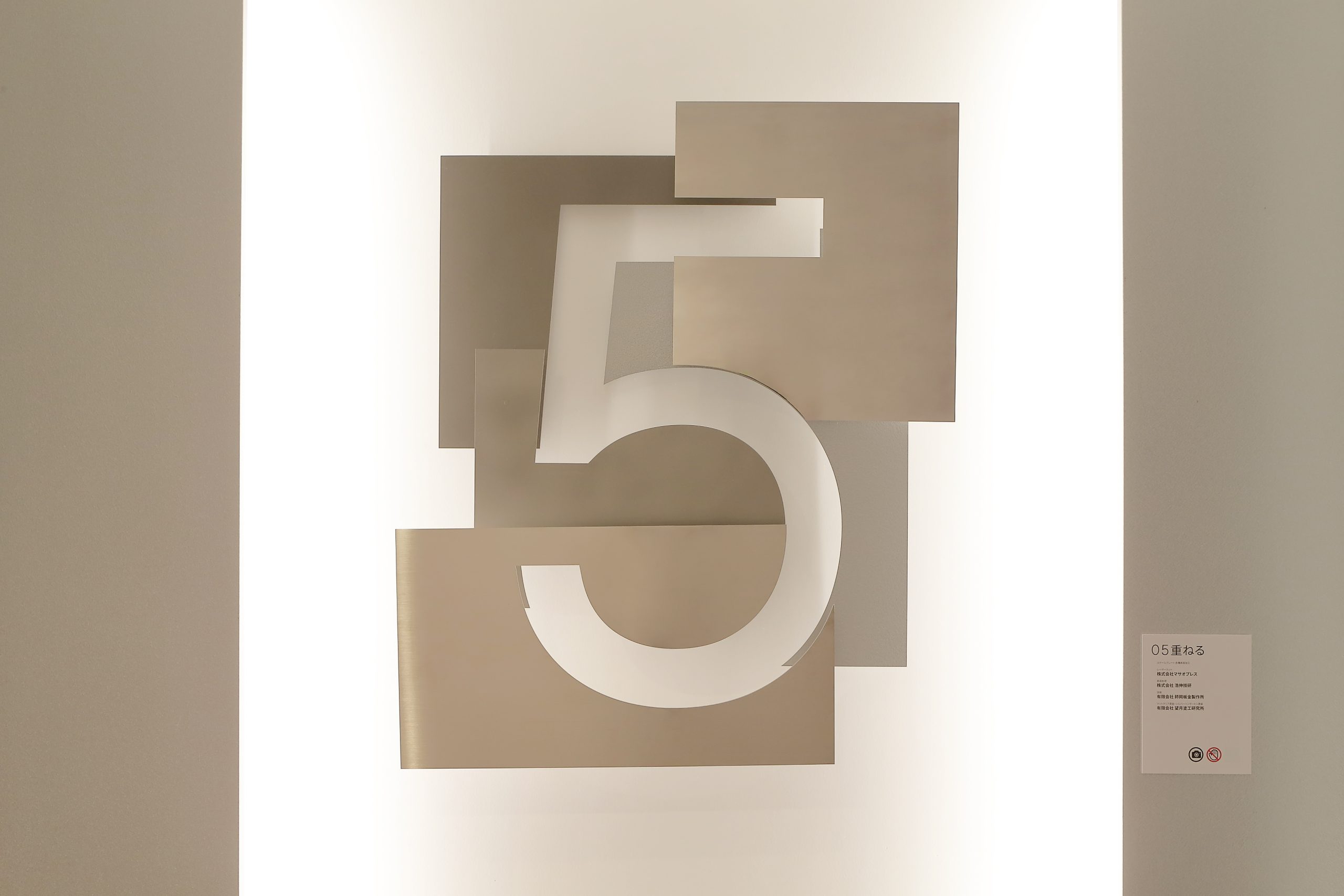 各階にあるフロアサインは、蒲田の町工場の共同作業によって生み出されたもの。各階ごとに熟練した町工場の技術が施されています。例えば、1階のサインは金属切削とアクリル切削を得意とする工場が協力し、アクリル板の中に金属を組み込んだデザインになっています。このように、1階から6階まで、階ごとに異なる素材や加工技術が使われ、それぞれのサインは独自の雰囲気を持っています。