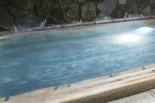 豊山荘の温泉は、「硫黄泉」ながらアルカリ性で、メタケイ酸や炭酸水素イオン、硫酸イオンをたっぷり含んでいます。その触感は葛湯のようなとろとろの湯で、コラーゲンやヒアルロン酸入りの湯に入っているような、スキンケアができる美肌力アップのお湯です。この温泉は、九州じゃらんの『まるで化粧水!?トロトロ湯ランキング』で2位に輝いたことでも知られています。